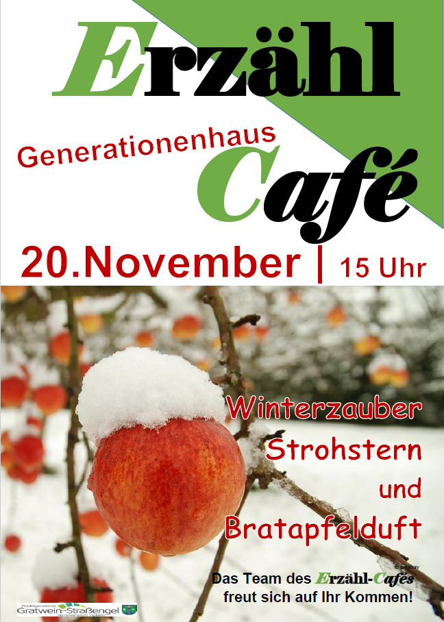 Am 20. November 2025 findet das nächste Erzählcafé im Generationenhaus Gratwein-Straßengel statt.