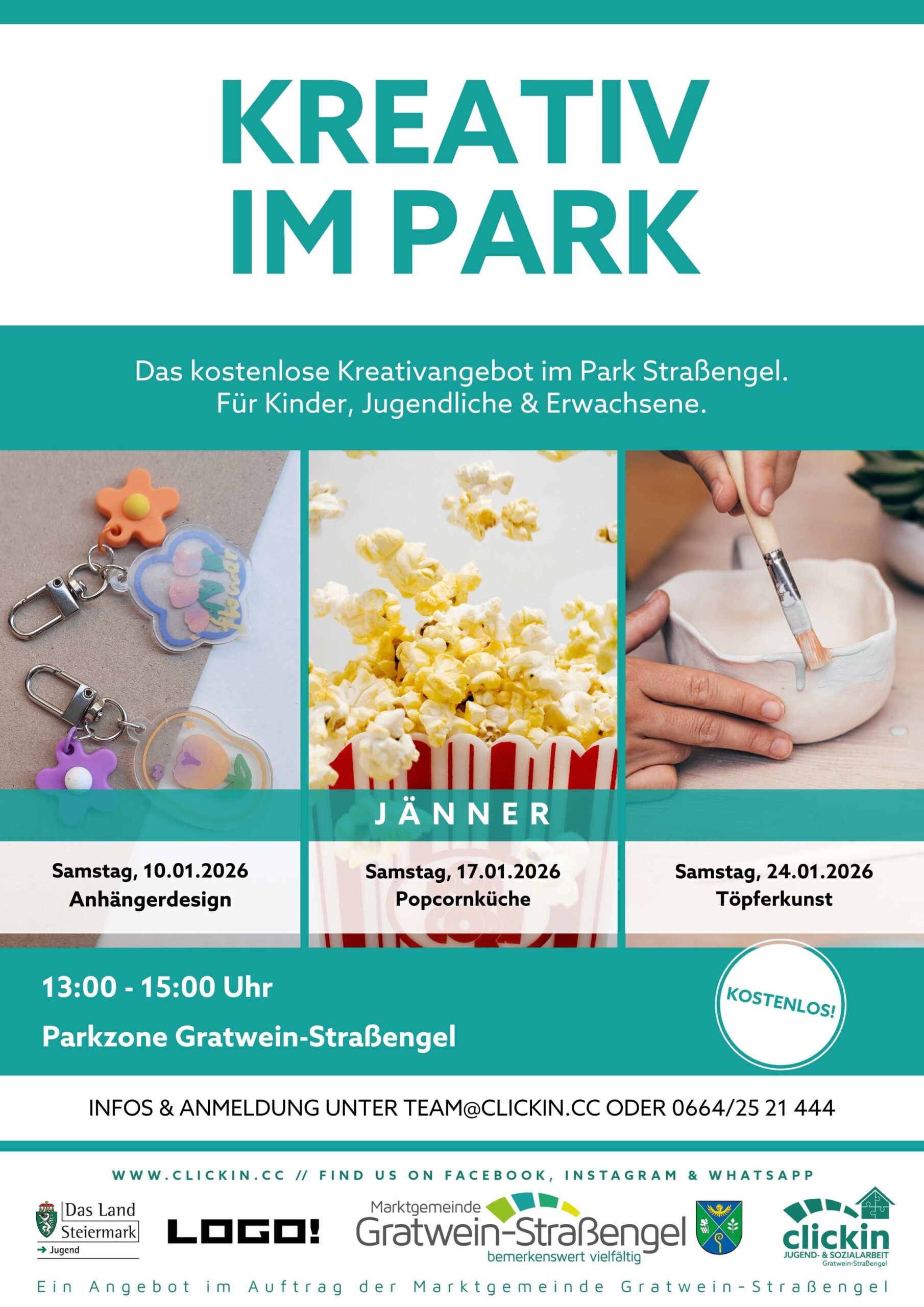 Unter dem Namen „Kreativ im Park“ finden von November bis März verschiedene, kreative Angebote in der Parkzone im Park Straßengel statt.