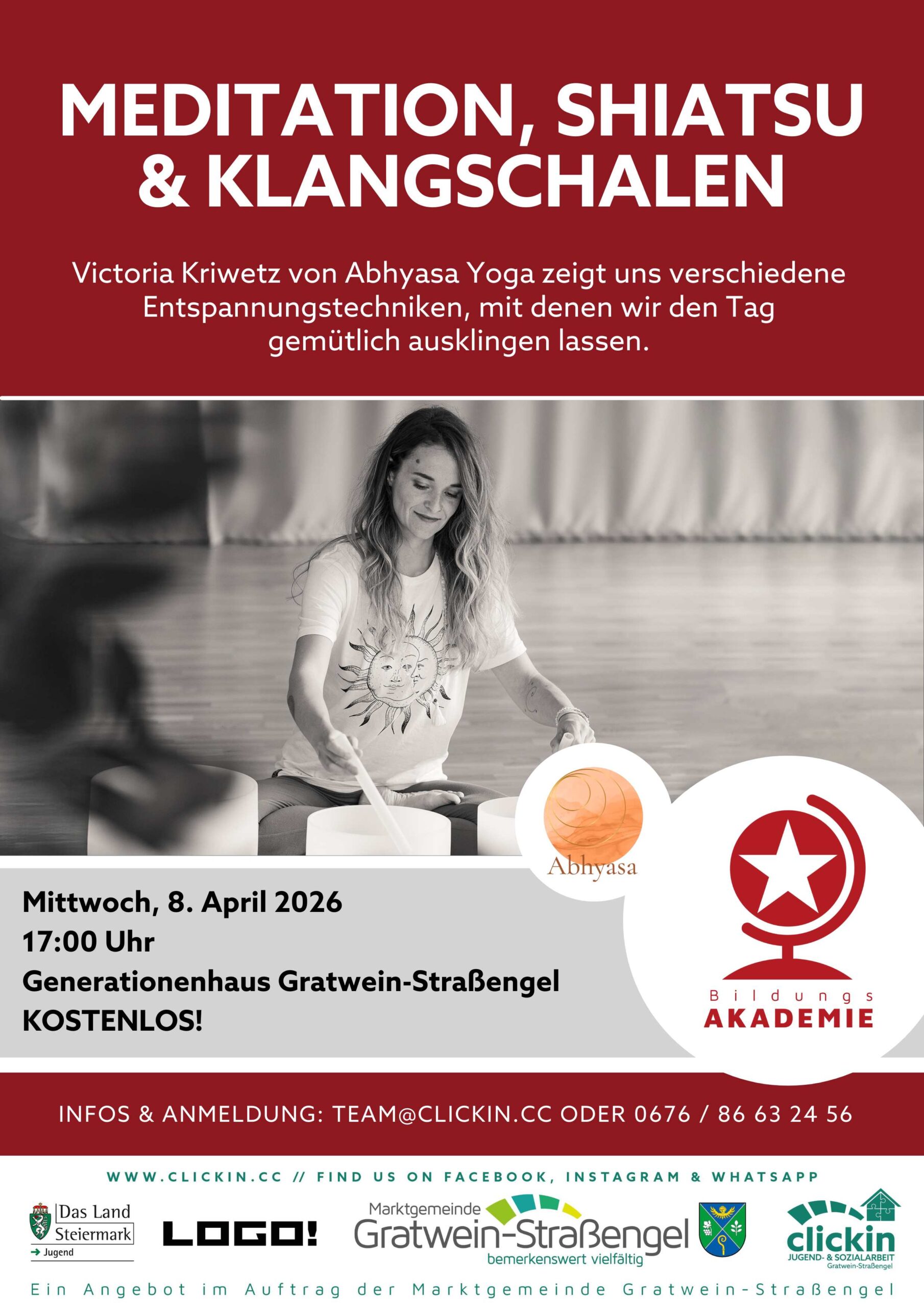 Victoria Kriwetz von Abhyasa Yoga zeigt verschiedene Entspannungstechniken aus den Bereichen Meditation, Shiatsu und Klangschalen, die Körper und Geist in Einklang bringen. Gemeinsam lassen wir den Tag in ruhiger Atmosphäre […]