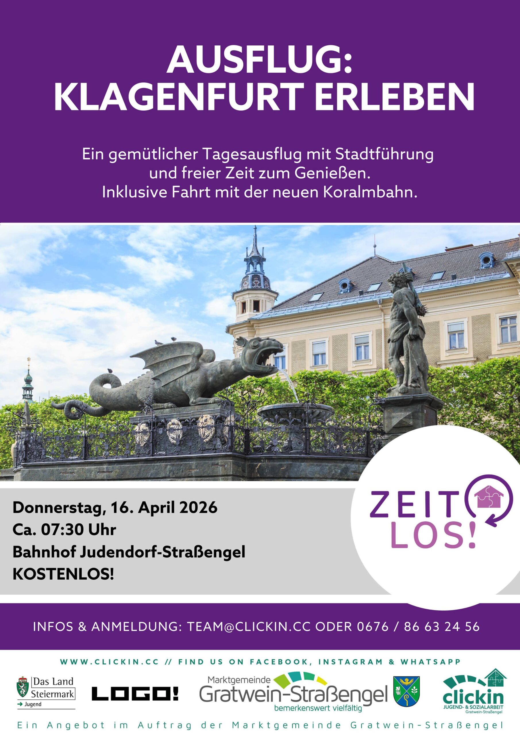 Gemeinsam entdecken wir bei einem Tagesausflug die Kärntner Landeshauptstadt Klagenfurt. Bei einer spannenden Stadtführung erfahren wir Wissenswertes über Geschichte und Kultur und es bleibt anschließend Zeit, durch die Gassen zu […]