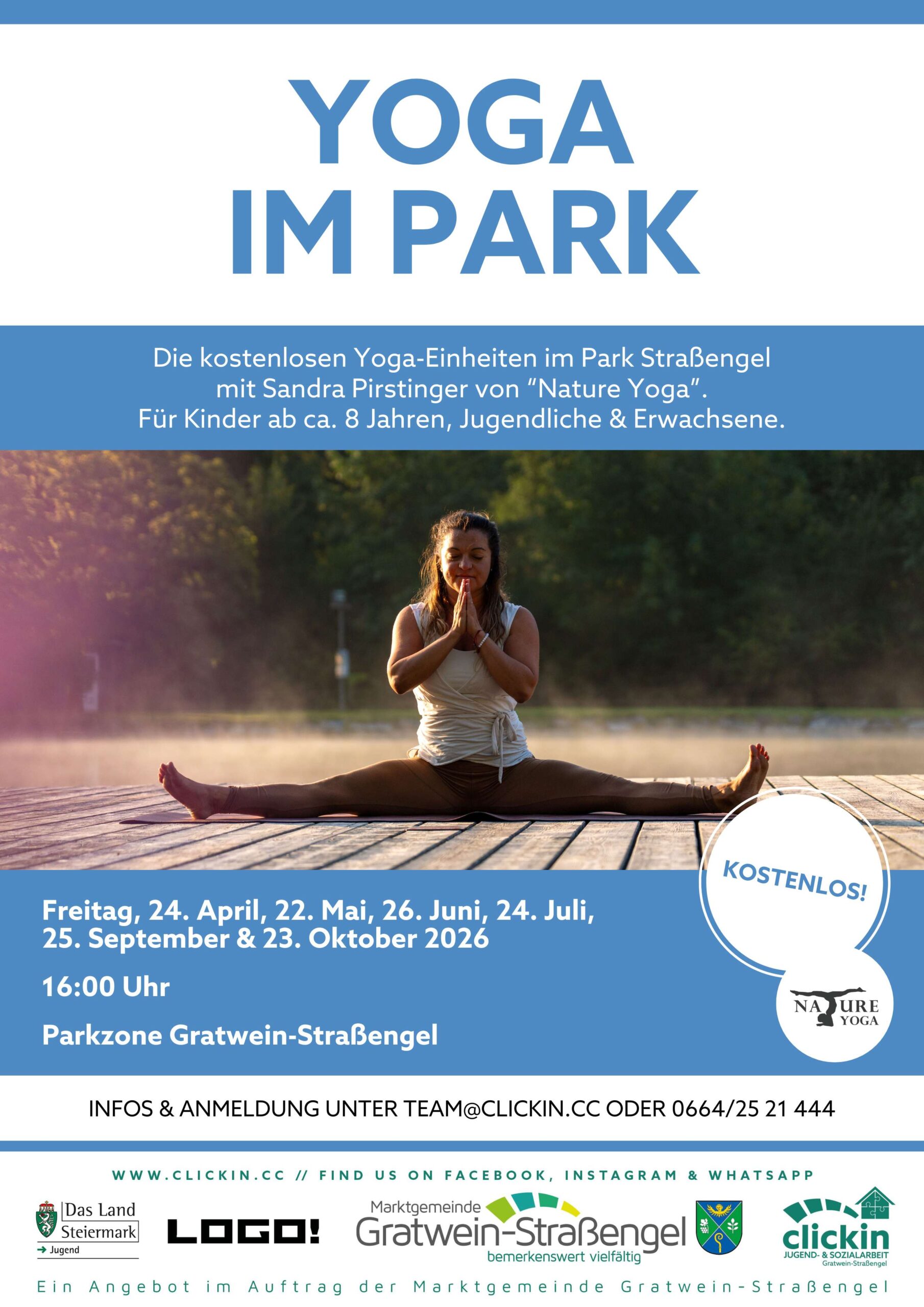 In der Parkzone Gratwein-Straßengel ergänzt „Nature Yoga“ das kostenlose Sport- und Bewegungsangebot um eine sanfte, achtsame Komponente. Über die Sommermonate lädt der Kurs einmal im Monat dazu ein, inmitten der Natur zur Ruhe zu kommen, den Körper zu stärken und neue Energie zu schöpfen.
